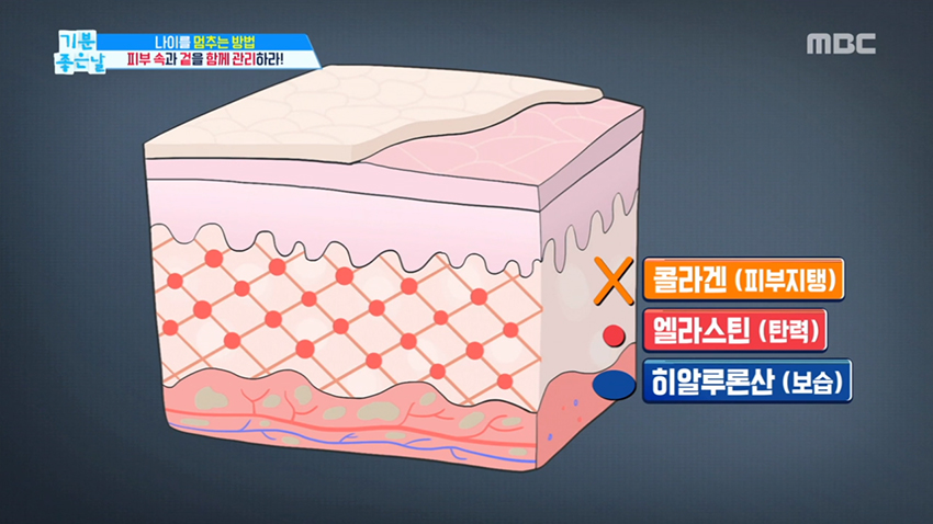 히알루론산은 진피층에도 있는데 무게가 자신의 1000배인 수분과 결합하는 피부에서 발견된 습윤제이다.