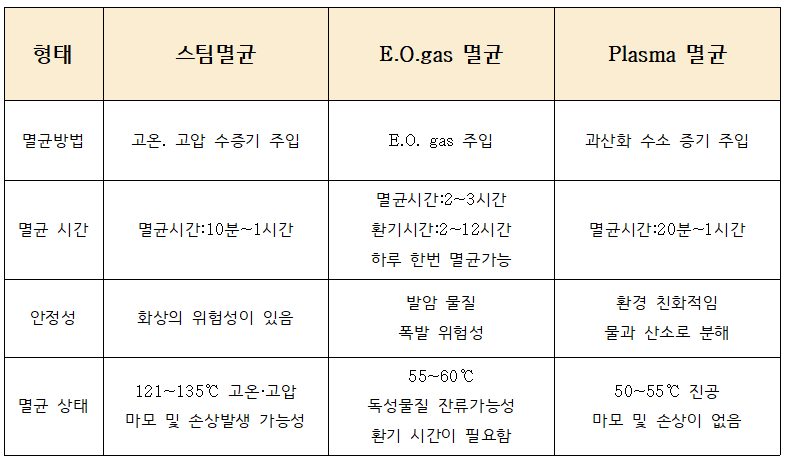 주요 멸균방법 비교표