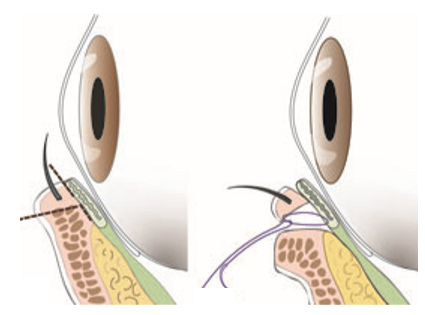 적응증 : 안검내반증 - 속눈썹이 눈동자를 향해 자라는 것 (눈 충혈, 각막 손상의 증상)