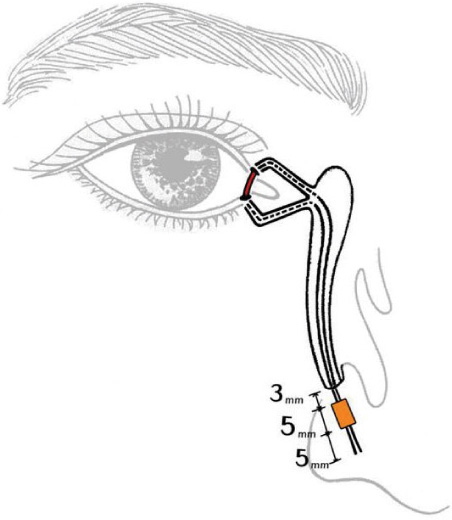 -silicone tube intubation : 하비도의 코눈물관의 출구 쪽에서 매듭이 만들어짐