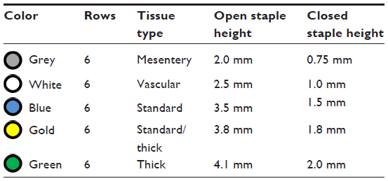 예) Endo GIA 60mm-3.5mm = 스테이플의 총 길이 60mm 스테이플의 깊이 3.5mm