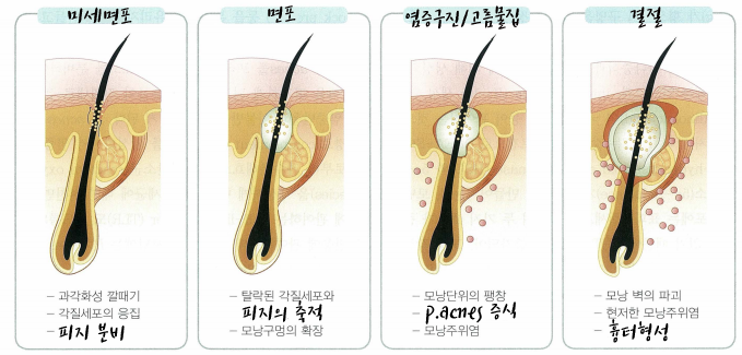 여드름은 털피지샘단위의 만성염증질환 으로
