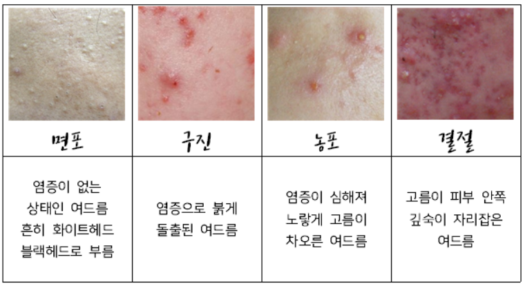 일반적으로 여드름은 한 가지 형태의 병변 보다는
