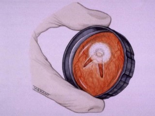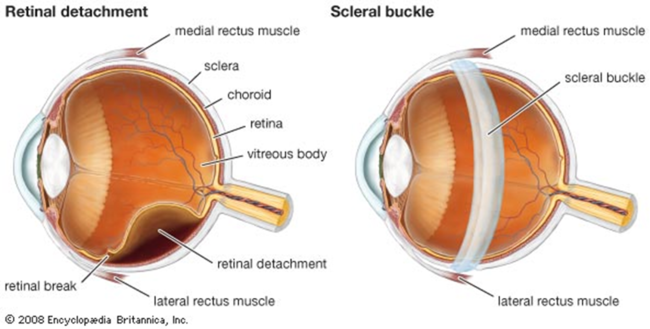 안구를 조임으로써 망막이 벽에 가깝도록 조정하는 수술