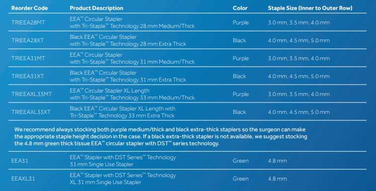 staple sizer : 3.0mm / 3.5mm / 4.0mm / 4.5mm