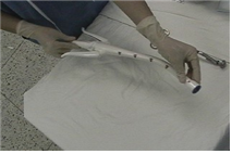 - trocar를 꽂은 뒤에 EEA 끝부분의 손잡이를 close 방향으로 완전히 돌려서 trocar가 보이지 않도록 준비하여 둔다.