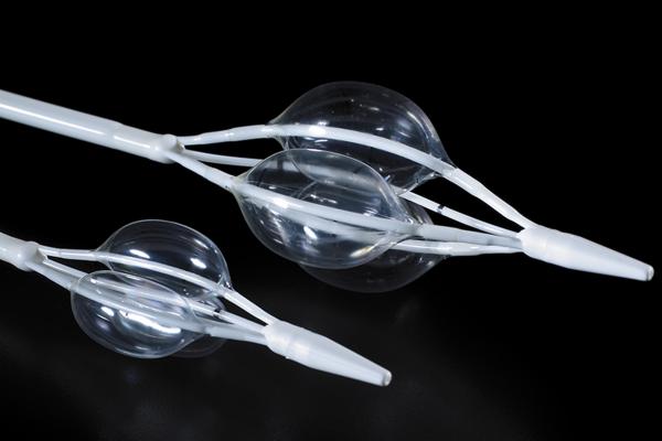 Stent를 재 위치에 완성시키고 나면, 3piece balloon 으로 stent 위치 고정