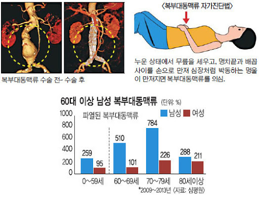 복부 내에 가장 큰 혈관인 대동맥 벽이 여러 원인에 의해 약해져 직경이 정상의 50% 이상 늘어나는 질환