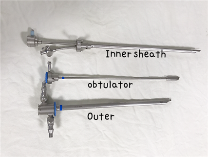 ①resectoscope의 sheath : outer, inner sheath, obtulator 조립