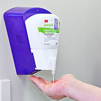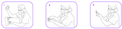 1.손을 직접 접촉하지 않도록 하여 알콜올 제재를 약 5ml (동전크기 하나) 를 손바닥에 받는다.