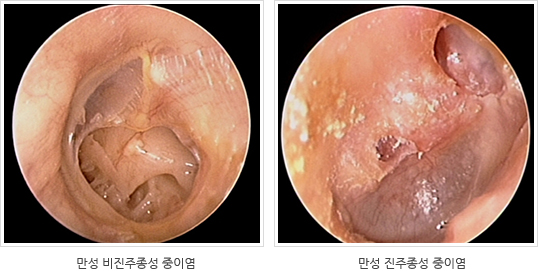 이때 피부의 일부가 뼈 또는 중이내로 자라 들어가 각질덩어리를 형성하는 진주종을 발생하게 됨