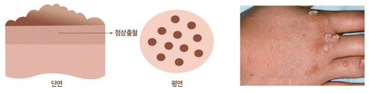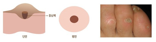 사마귀는 병변 표면의 단단한 각질층을 깎아내면 중심부가 딱딱하지 않고 검은 점으로 보인다.
