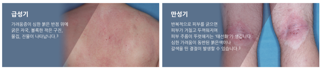 반복적으로 긁은 결과 피부가 두꺼워진 태선화
