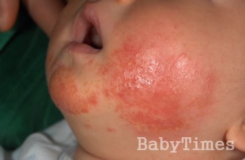 생후 2~3개월 이후 주로 급성병터로 태열의 형태로 나타난다. 양 볼의 가려움을 동반한 홍반으로 머리와 팔다리 폄(오금) 부위에 발생한다. 일반적으로 피지 분비가 많은 콧등과 기저귀 닿는 부위에는 병터가 나타나지 않는다. 삼출이 심한 경우도 있으며 2차 감염을 일으켜 농포, 딱지, 침윤병터를 보인다. 감기, 유치가 날 때, 예방주사 등에 의해 아토피 피부염이 악화 된다