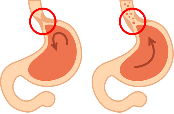 위 속의 내용물이 식도로 역류하는 것은 정상인에게도 짧은 시간 동안 일어날 수 있지만, 역류가 자주 발생하고 그 기간이 길어지면 역류 증상과 식도염을 일으킬 수 있다. 식도염은 역류의 시간, 역류된 내용물의 자극 정도, 식도 점막 자체의