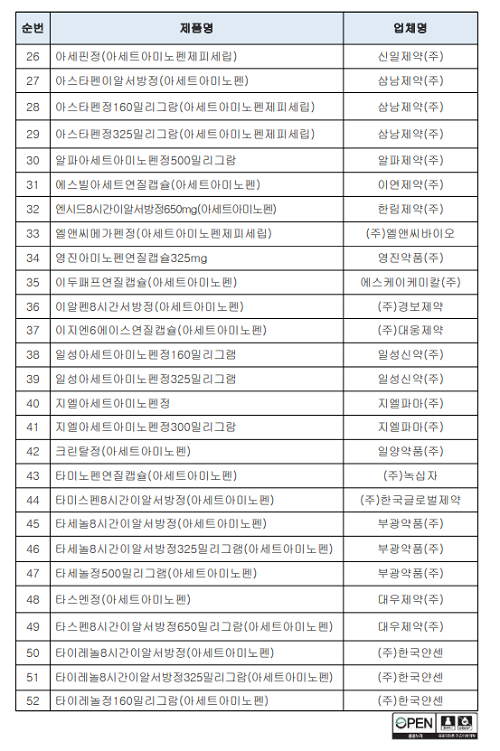 복제 약품이 같다고 할 수 있느냐고 의문을 가질 수 있다. 아무래도 복제 약품이나 카피약이라고 하면 뭔가 성분이 다를거 같고 기존의 약보다 효능이 적을거란 의문을 가질 수 있다. 현재 시중에 유통 중인 아세트아미노펜 제제는 식품의약품안전처에서 인증한 동일한 효능, 효과를 가진 제품이다.