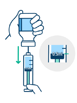-배포한 접종용 주사기를 이용하여 1 회 용량 (0.5mL) 을 추출한다.