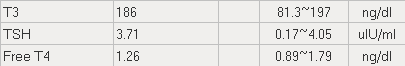 -T3 : 실제적인 갑상선의 기능을 수행하는 호르몬