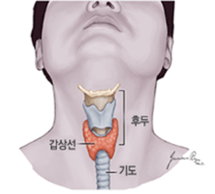 갑상선 수술하고 난 후 겉의 흉터가 개인에 따라 다르게 남듯이 목 안에서 수술 부위가 아무는 과정에서 과도하거나 엇갈리는 상태로 붙는 경우를 말한다. 목의 주름이 생길 수 있고 , 음식을 삼킬 때 목의 피부가 움직여지고, 목이 당기는 듯한 느낌이 들 수 있다. 수술 다음날 부터 목을 뒤로 과격하게 젖히는 동작만 제외하고 스트레칭 하듯 목과 어깨 운동을 하는 것이 유착 방지에 도움이 된다.
