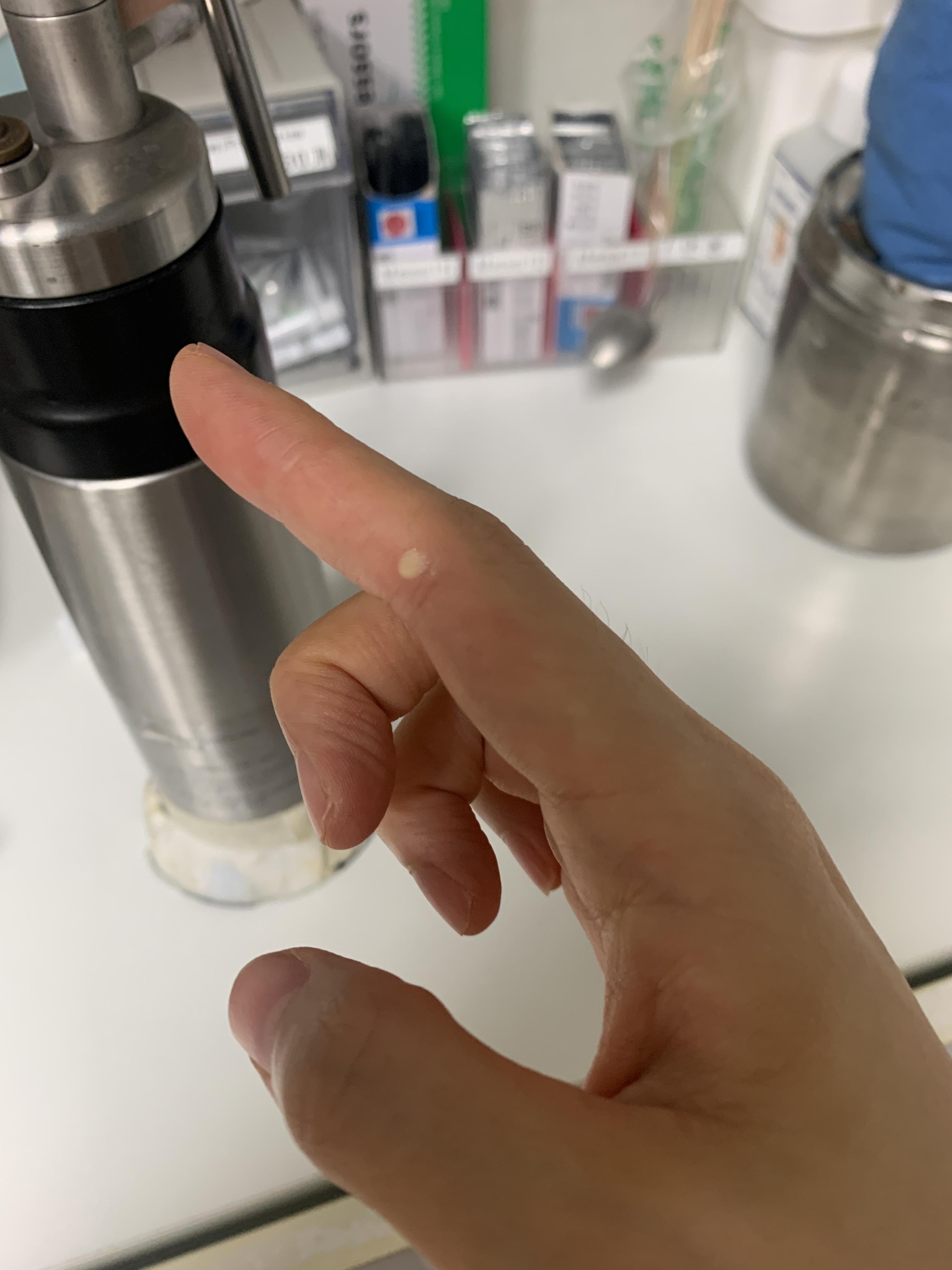 1) 손가락에 사마귀가 감염되어 단단하게 올라와있는 것을 발견