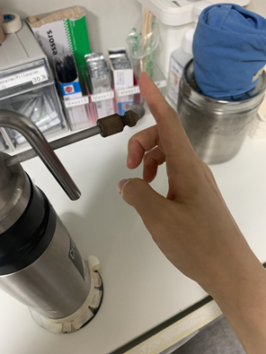 2) 냉동분사기로 5초씩 4회 충분히 냉동치료를 하였다.