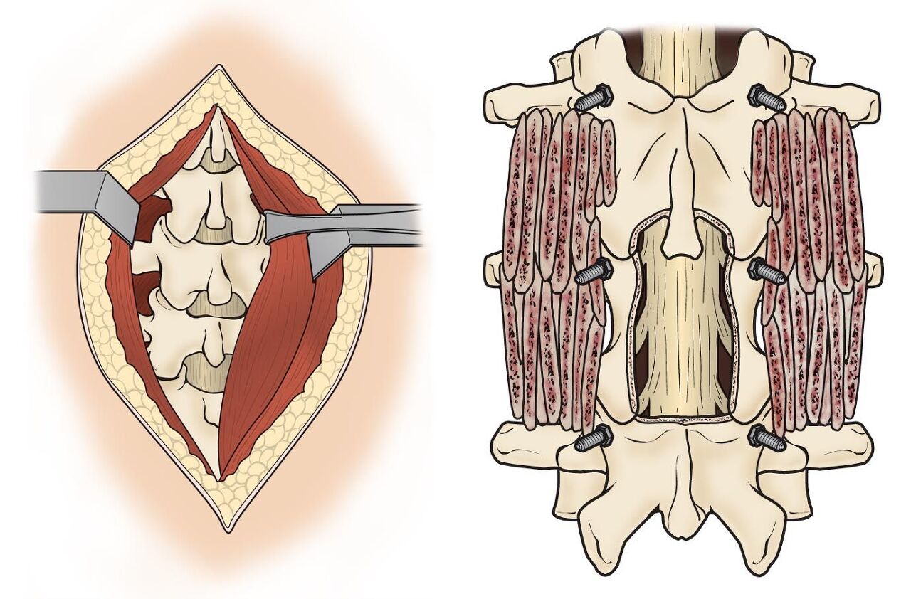 2.후방에서 최소 침습적 수술 기법을 사용하여 나사못을 고정한다.