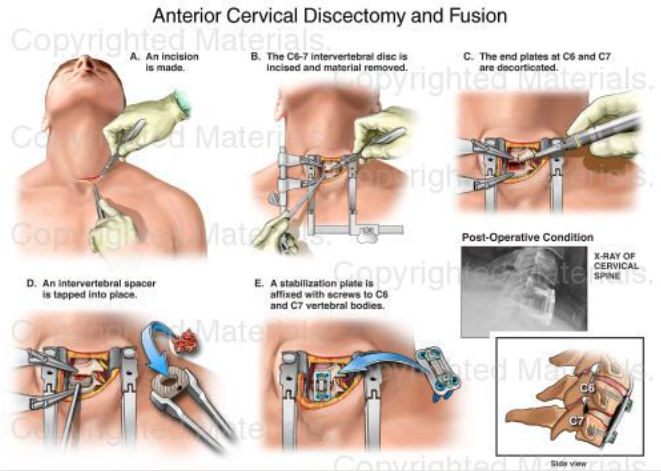 - 추간공확장술(foraminotomy): 대부분의 추간반을 보존하고 튀어나온 추간반만 측면으로 접근하여 제거