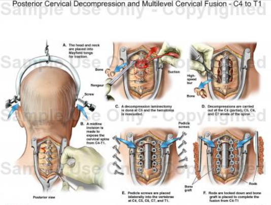 디스크가 3부위 이상일 떄는 후방 경유법이 효과적이다. 주로 연성디스크가 후측방, 추간공으로 빠져 나올 경우에 할 수 있고, 목이 짧아서 전방으로 수술접근이 어려울 때 및 황색인대골화증이 있을 때 적합한 수술 방법