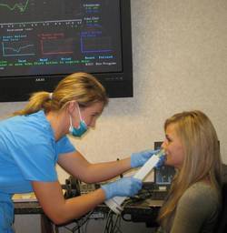 반사된 음파를 분석하여 비강의 구조를 파악하는 방법으로서 비강의 단면적과 부피를 장치 내의 공식에 의하여 산출하여 나타낸다. 점막수축전후의 양측 비강 면적의 변화를 통해 비폐색을 초래하는 비후성비염, 비중격만곡, 아데노이드비후 등을 감별할 수 있다.