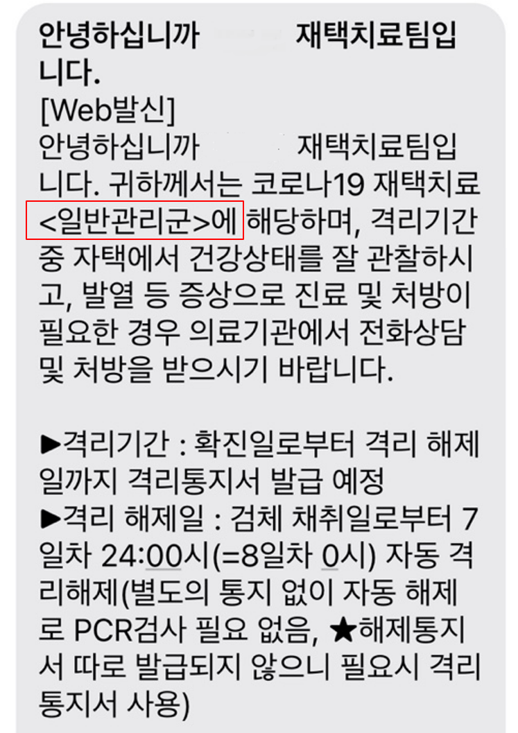 보건소 환자 분류 후 재택치료 (집중관리군 중심 건강관리)