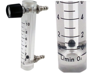7) 산소유량계의 눈금은 동그란 공의 중앙이 가르키는 곳을 읽는다.