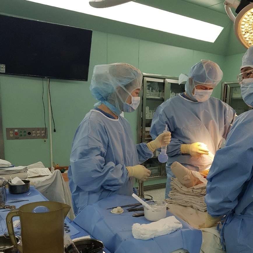수술실에서 보기에 같은 가위라도 수술마다 쓰임이 다 다르고 교수님마다 선호하는 가위도 다 달랐습니다. 학교에서 색 별로 구분되던 장기들은 온통 다 붉게만 보이는데 교수님과 스크럽 선생님 사이에 말없이 기계가 왔다갔다하는 상황이 충격적이었습니다. 내가 할 수 있는 일이 맞는지 당장 도망가고 싶었습니다. 보비에 조직이 타는 냄새보다 스크럽에서 젖은 장작으로 훨훨 타고 있는 냄새가 더 강하게 느껴졌을 정도였습니다.
