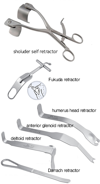 Fukuda sholuder retractor, darra retrctor, baby richardson, sharp hohmann 등 사용