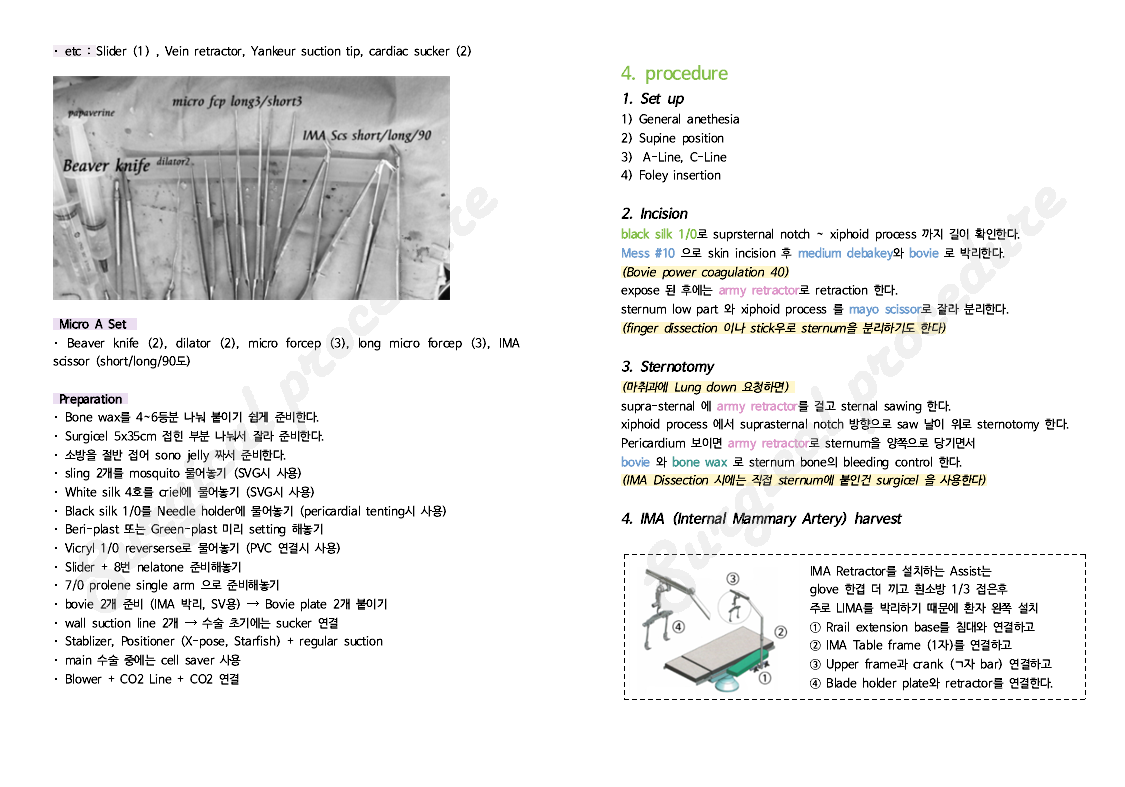 관상동맥우회술 수술과정 / 수술 프로시저