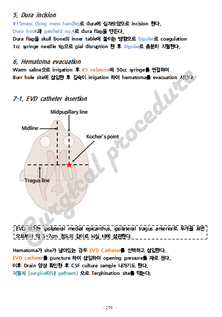 | Instrument | ・ Burr hole용 air drill & burr ・ Tripod (head rest 고정) |