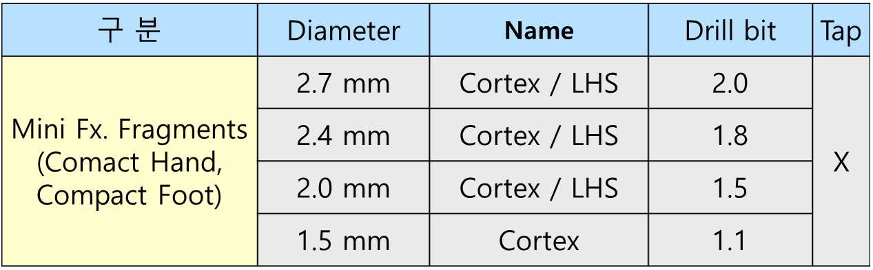 4)사용부위 : cortex screw, cancellous screw