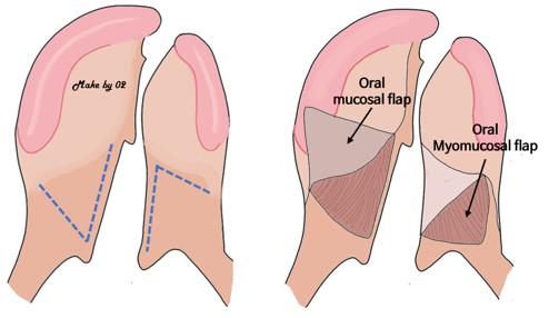 7, Oral lining repair with triangular mucoperiosteal flap transposition