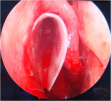 2) 비강 앞쪽 비중격에 점막 절개를 한 후, 여러 기구들을 이용하여 비중격의 연골부위 및 골 부위를 노출시킨다.