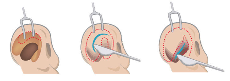 1) 전신마취를 실시한 후 수술 부위 포함한 얼굴의 피부 소독을 진행한다.